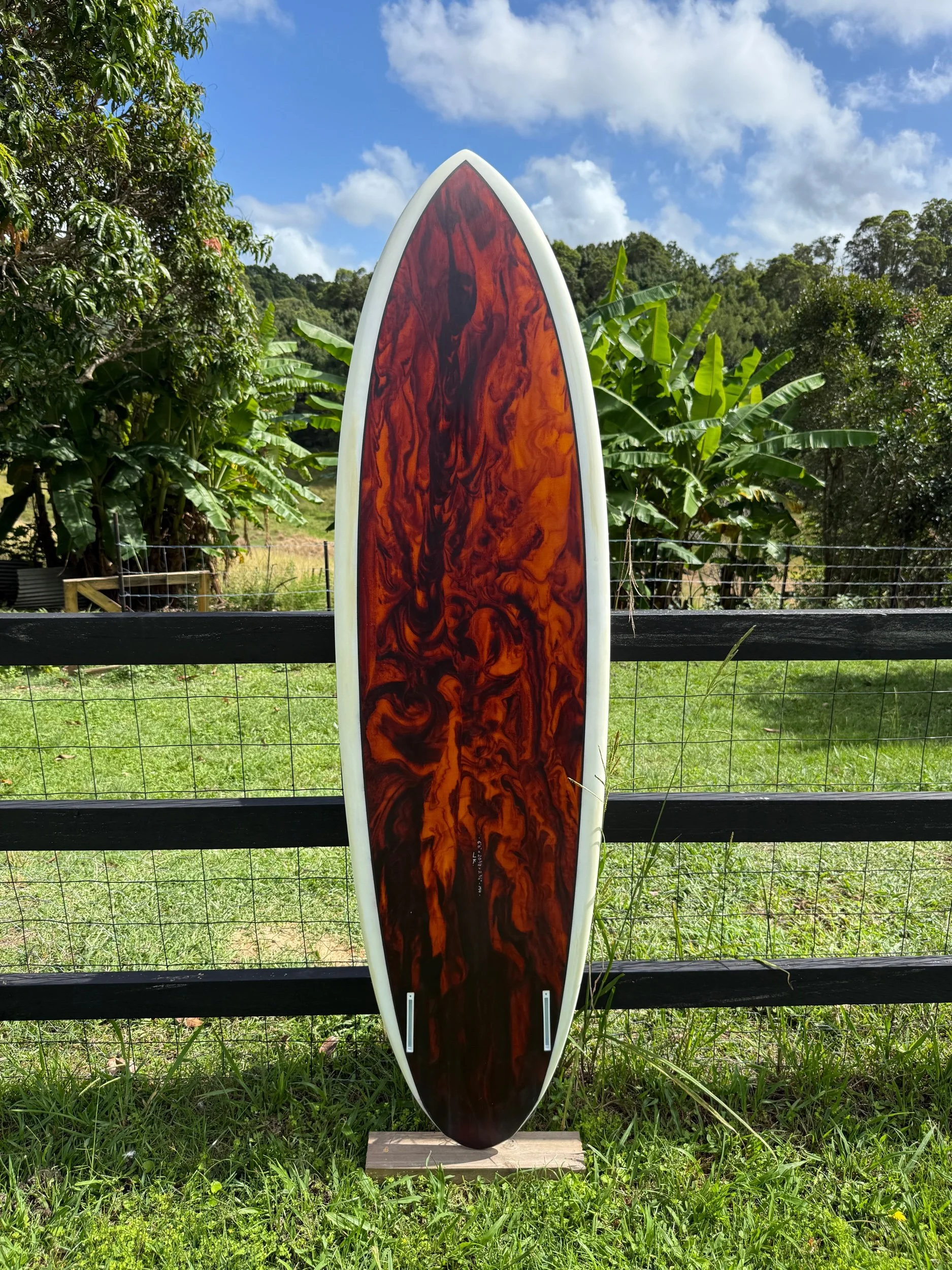 Finish: Full resin tint (swirl bottom, cream pigment deck)